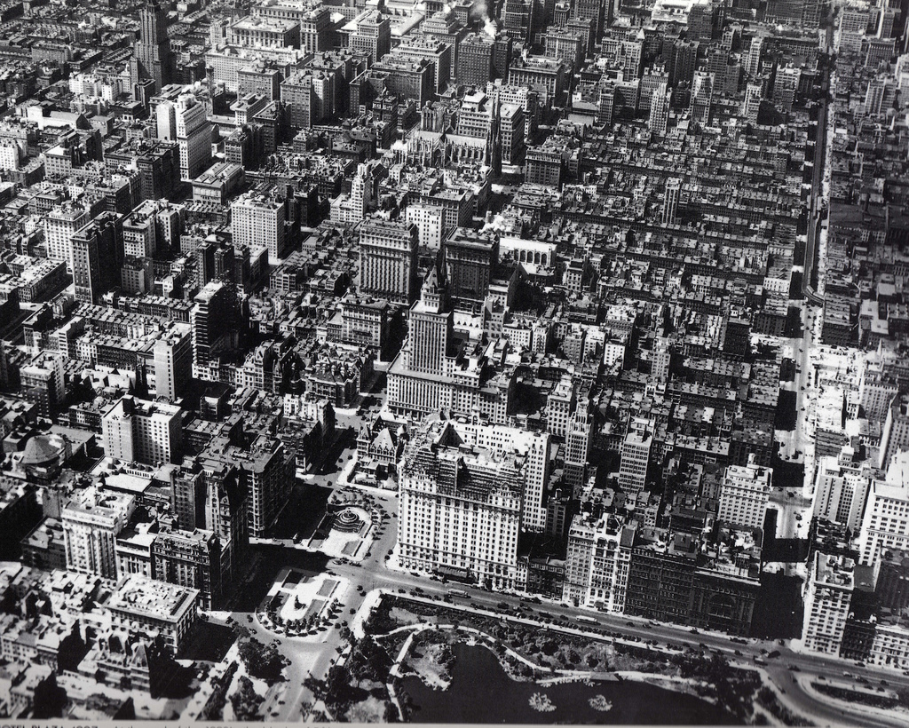 Aerial view of Midtown Manhattan, May 1925. The Plaza Hotel is in the foreground. The Empire State Building would not be constructed until 1931.