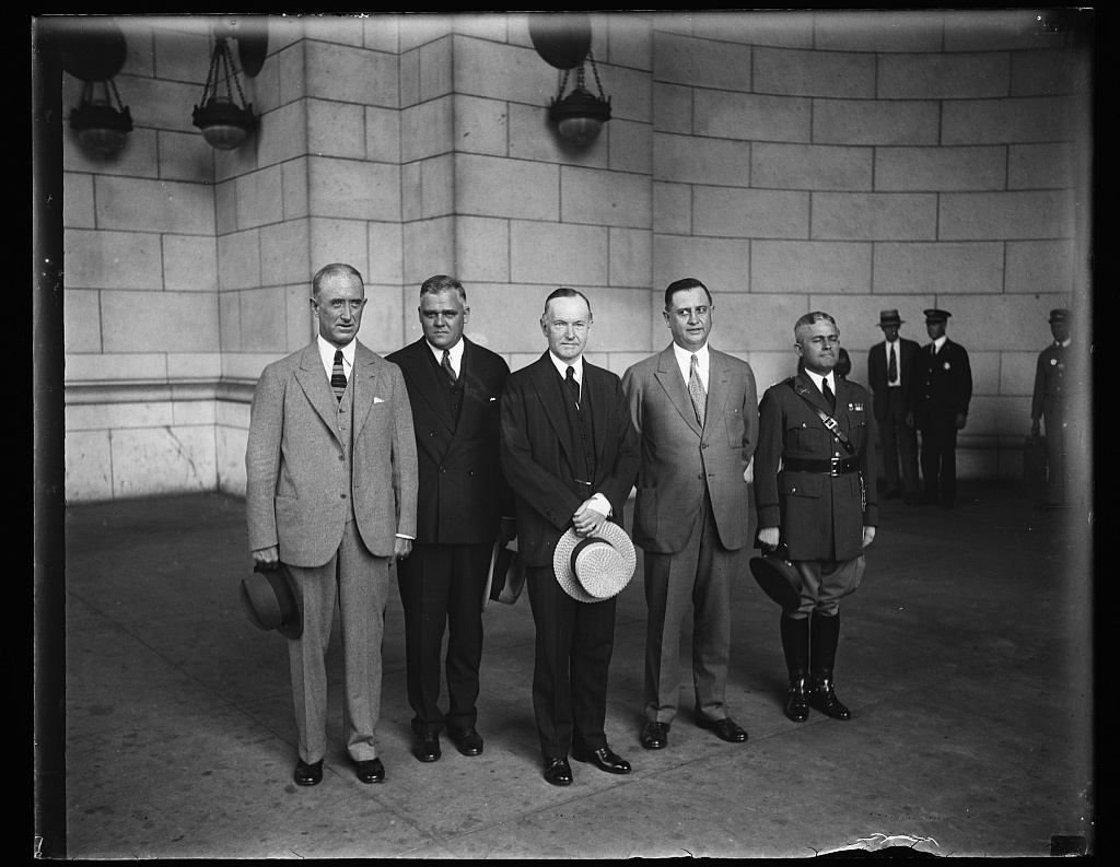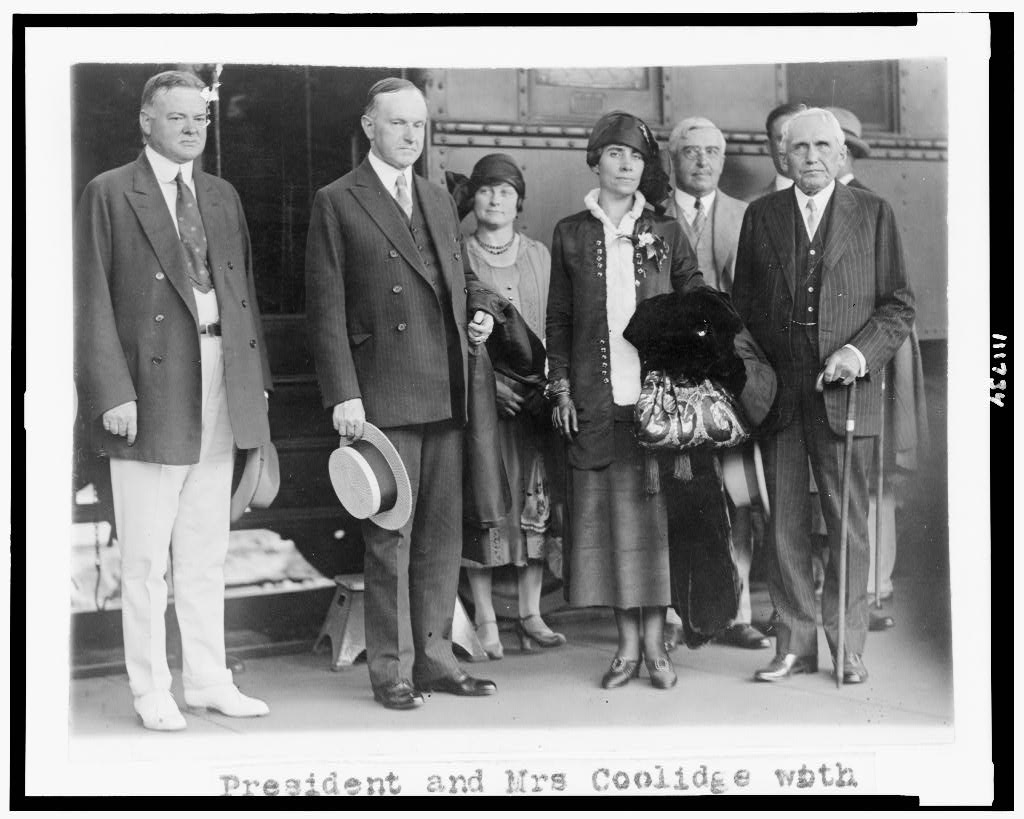 President and Mrs. Coolidge returning from summer in Swampscott, MA, with Secretary of Commerce Herbert Hoover and new Secretary of State, Frank B. Kellogg, 1925.