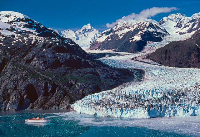 11. Glacier Bay National Monument, Alaska, established February 26, 1925. Margerie Glacier sprawls before a cruise ship visiting the site. Courtesy of Danny Lehman/Corbis.
