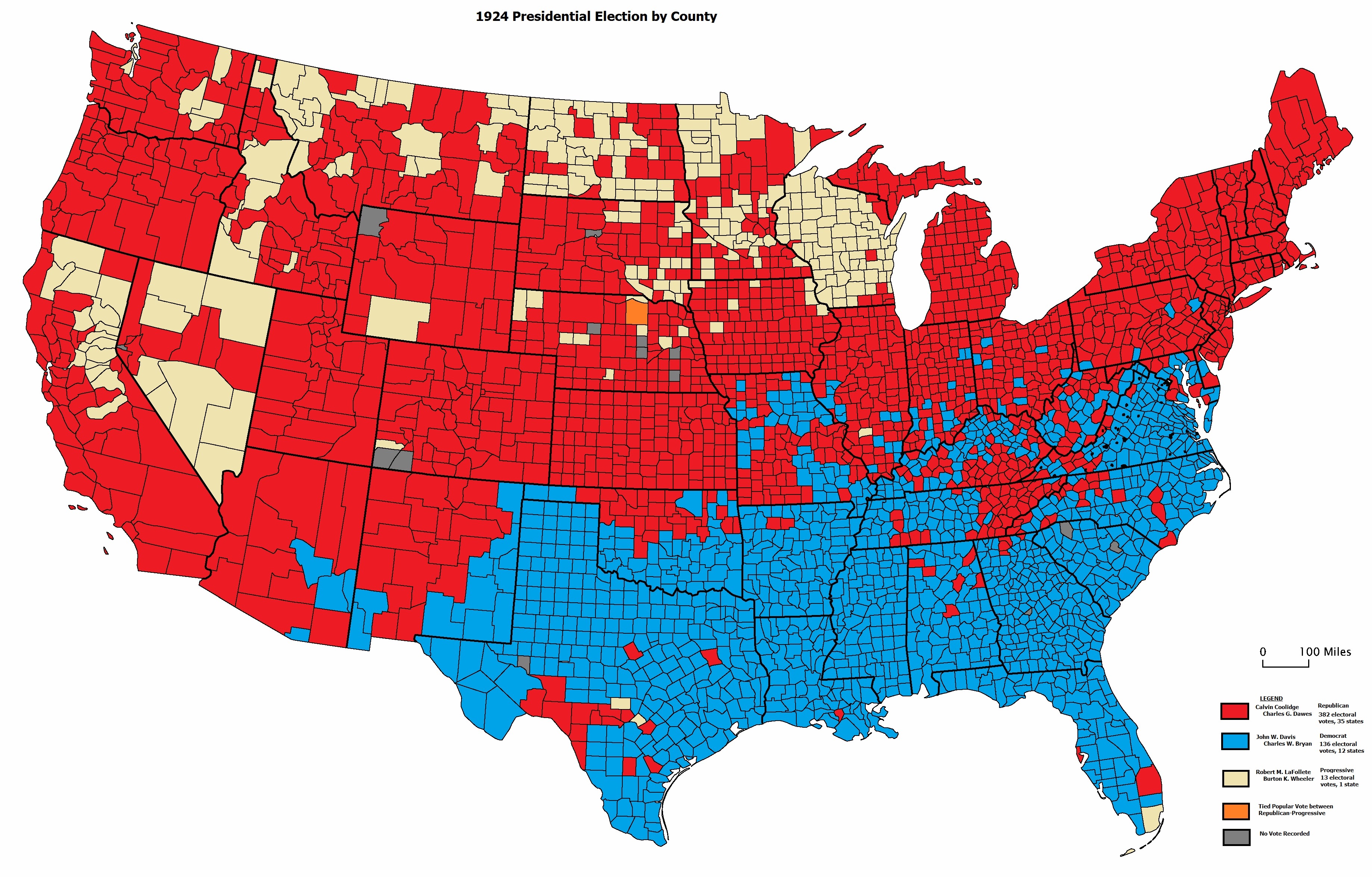 County-by-county breakdown of the 1924 Election can be found in The Presidential Vote, 1896-1932 by Edgar E. Robinson.