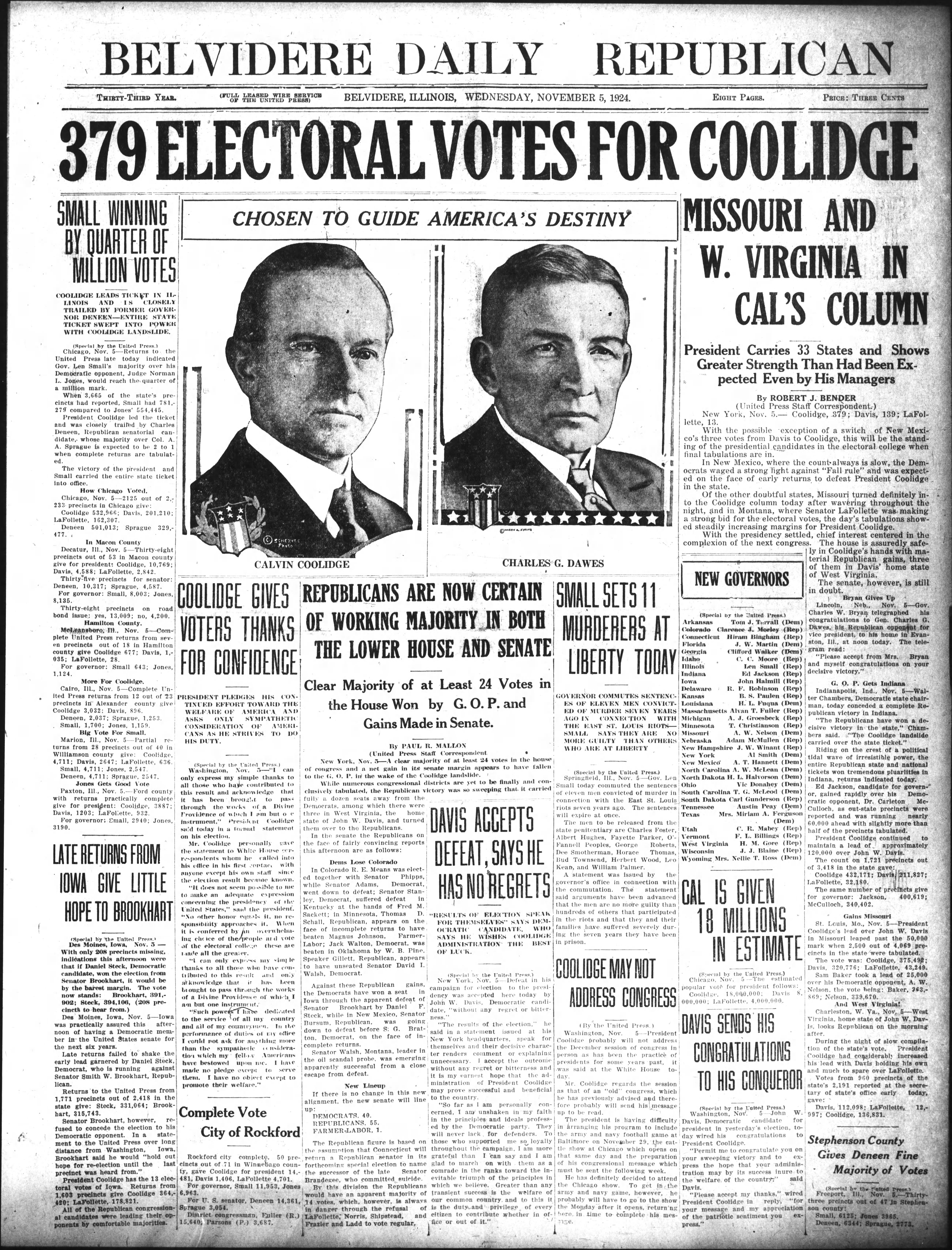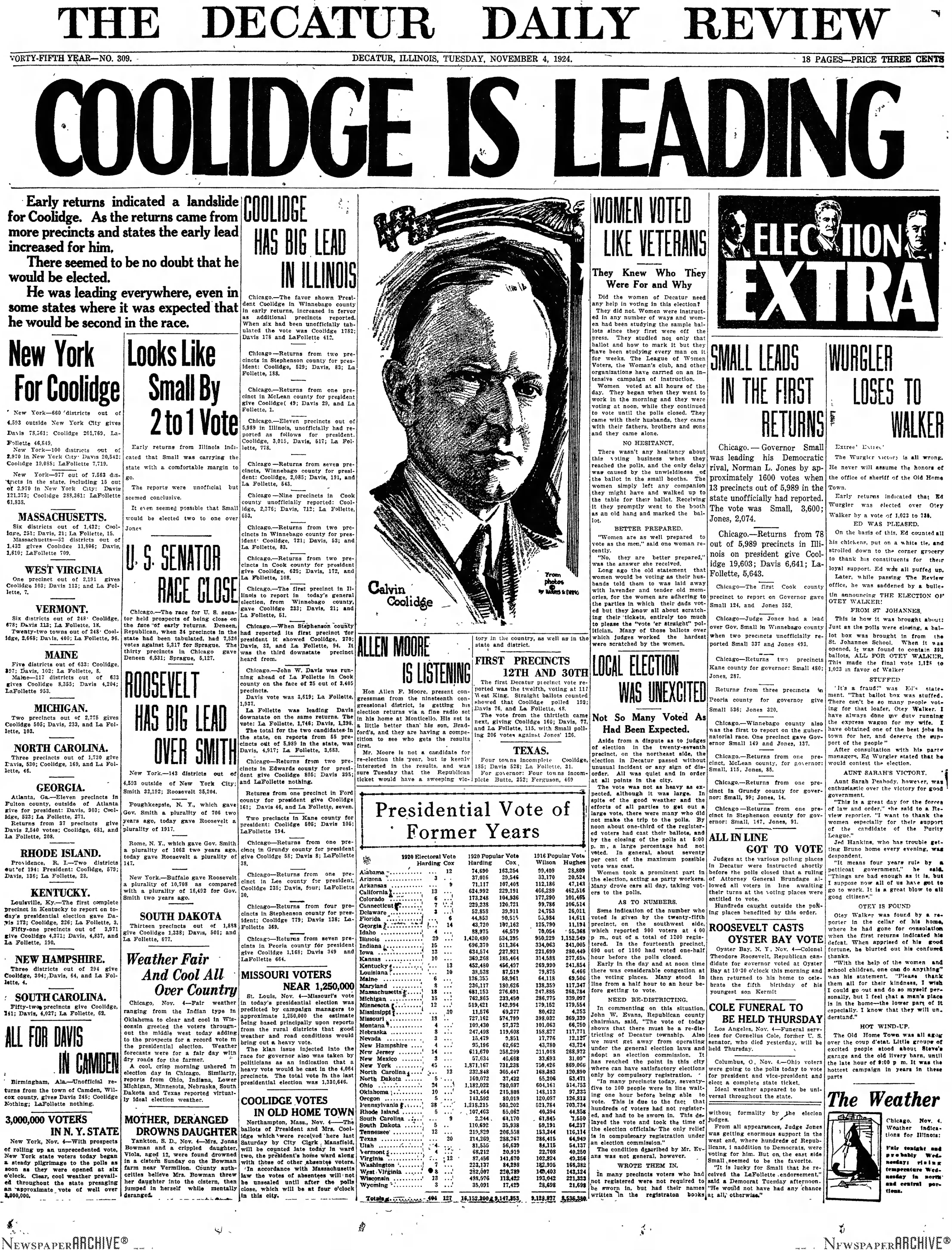 “I haven’t any specific reports about any states. My reports indicate that I shall probably carry Northampton. That is about as far as I can go into details. That is based more on experience” — Calvin Coolidge, when asked about returns for the upcoming election of 1924.