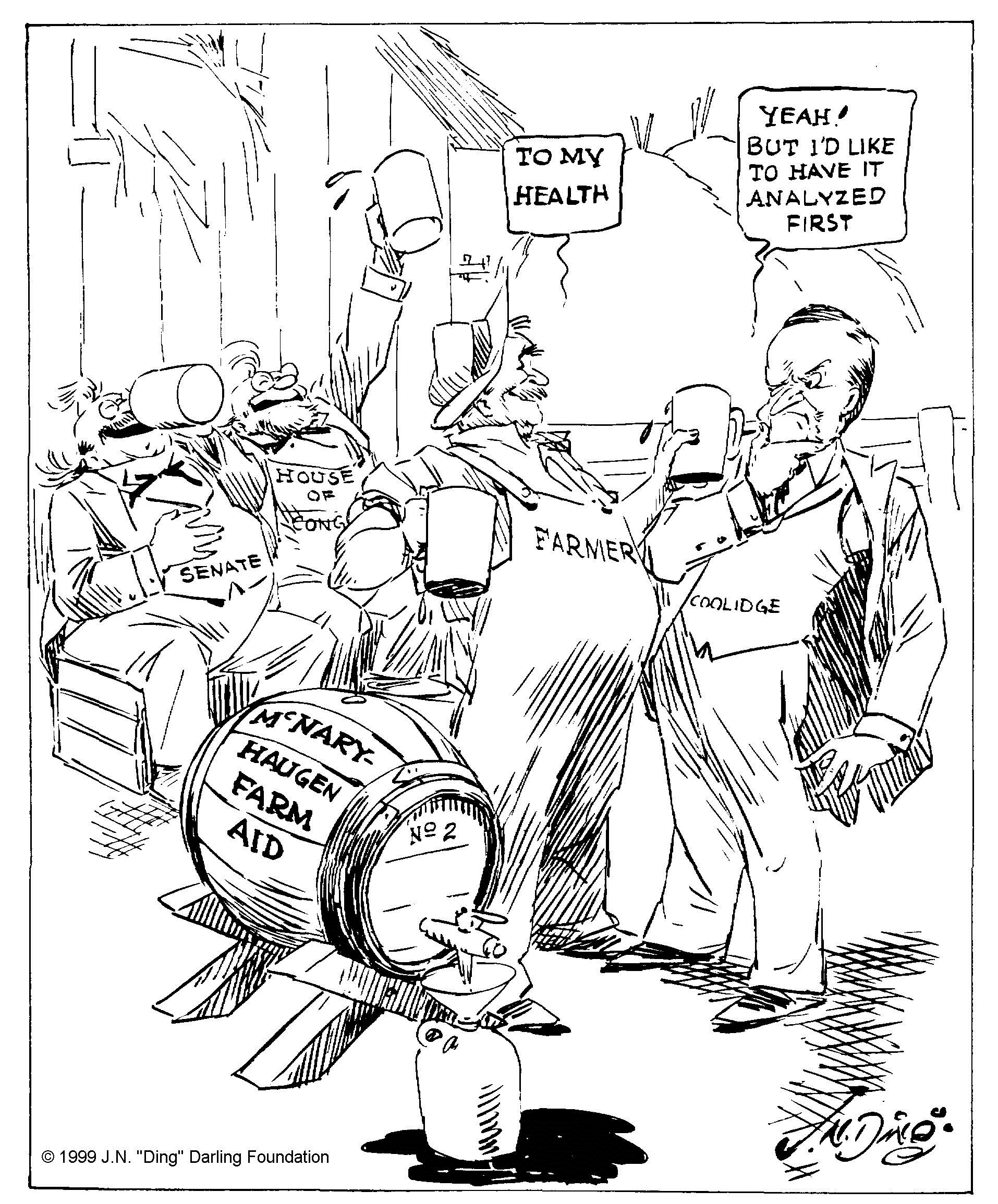 Coming on the heels of the previous year’s intense battle for McNary-Haugen relief that sought to rescue farmers from the consequences of producing more than markets wanted with subsidized prices and well-meaning economic regulation, Coolidge vetoed the measure and its barely amended sister bill because he understood it was built on a mountain of good intentions devoid of real power to aid those who actually worked America’s farms. There was something greater here than merely creating artificial relief from the hardships, risks and costs that have been an inherent part of agriculture. Fixed prices, tariff overhaul and the creation of temporary markets would only encourage more suffering by rewarding poor judgment, exacerbating more inflation, overproduction, and under-distribution. All the while, these actions would continue to feed a mistaken conviction that nothing is being done to help the farmer. The farm was doing more than sowing, reaping and marketing crops, it was engaged in the all-important work of developing competent men, women and children with integrity and a sense of moral worth, Cal countered.