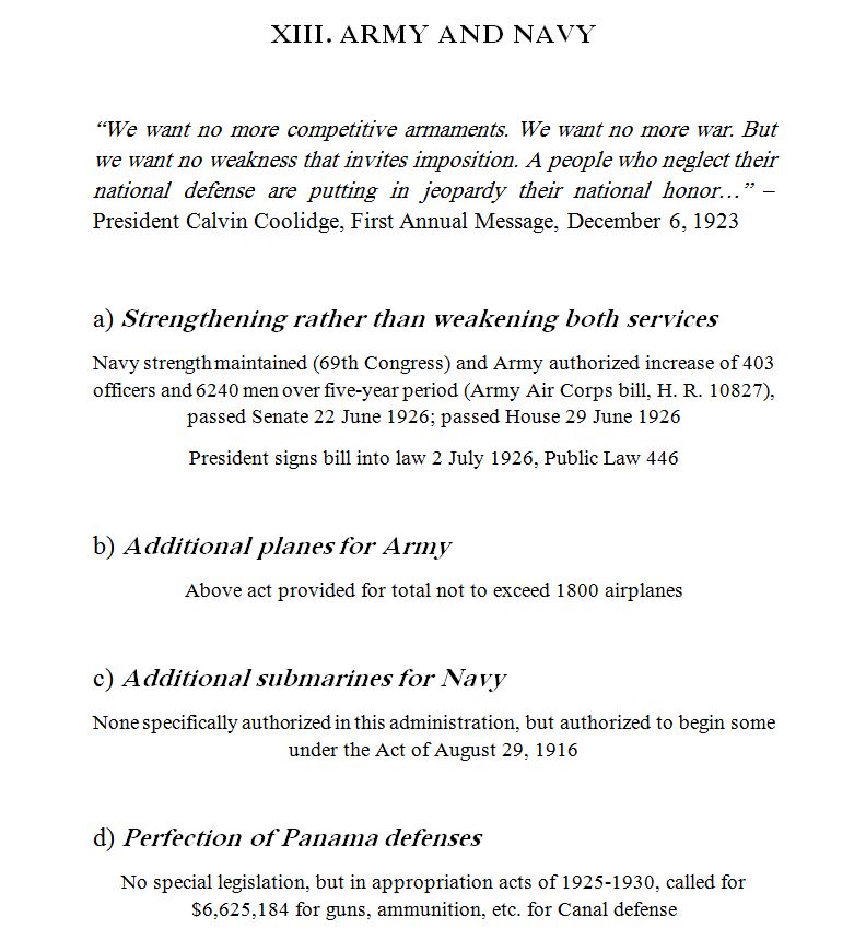 Few items have engendered as much misunderstood, even misinformed, emotional responses as military spending these days. In Coolidge’s time, before the growth of a vast Department of Defense bureaucracy, differentiating between an adequate defense and an unnecessary expenditure was easier to accomplish. Coolidge understood what so many fail to grasp now that not all military spending is beneficial nor essential to national defense. Defense spending meant those expenditures necessary for actual defense materials.