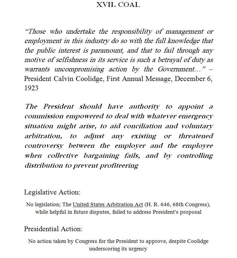 President Coolidge then turns to address potential trouble in one of America’s crucial industries, Coal: