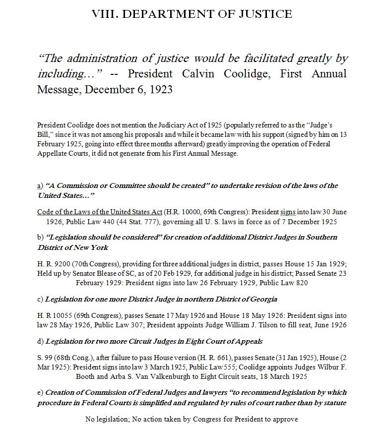 Eighth in our manuscript are Coolidge’s proposals for the Department of Justice: