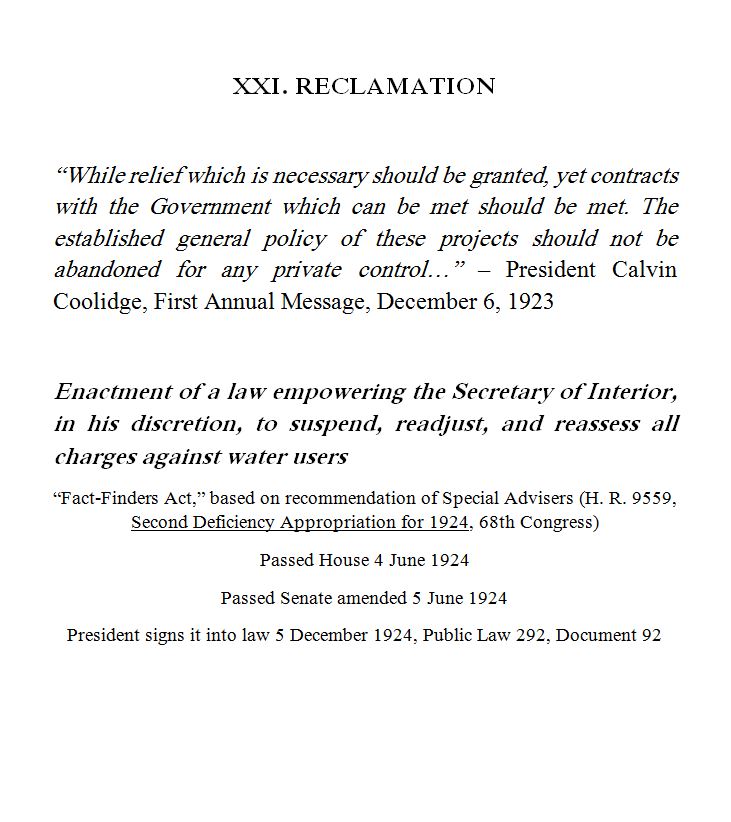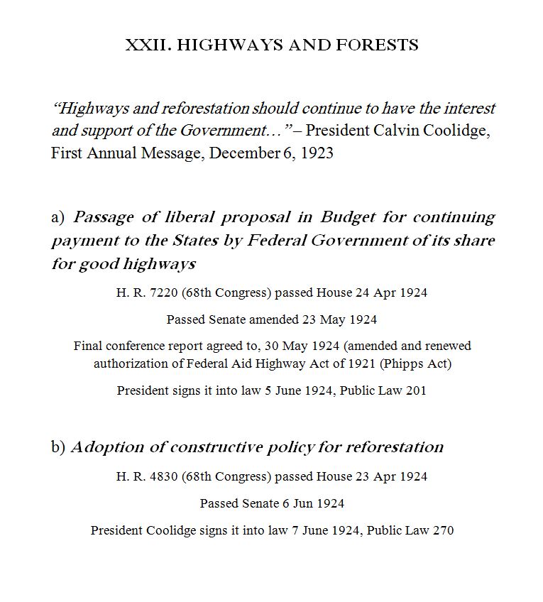 The final two issues President Coolidge includes in his unofficial record of 1923 legislative proposals and their outcomes concern Reclamation and Highways and Forests: