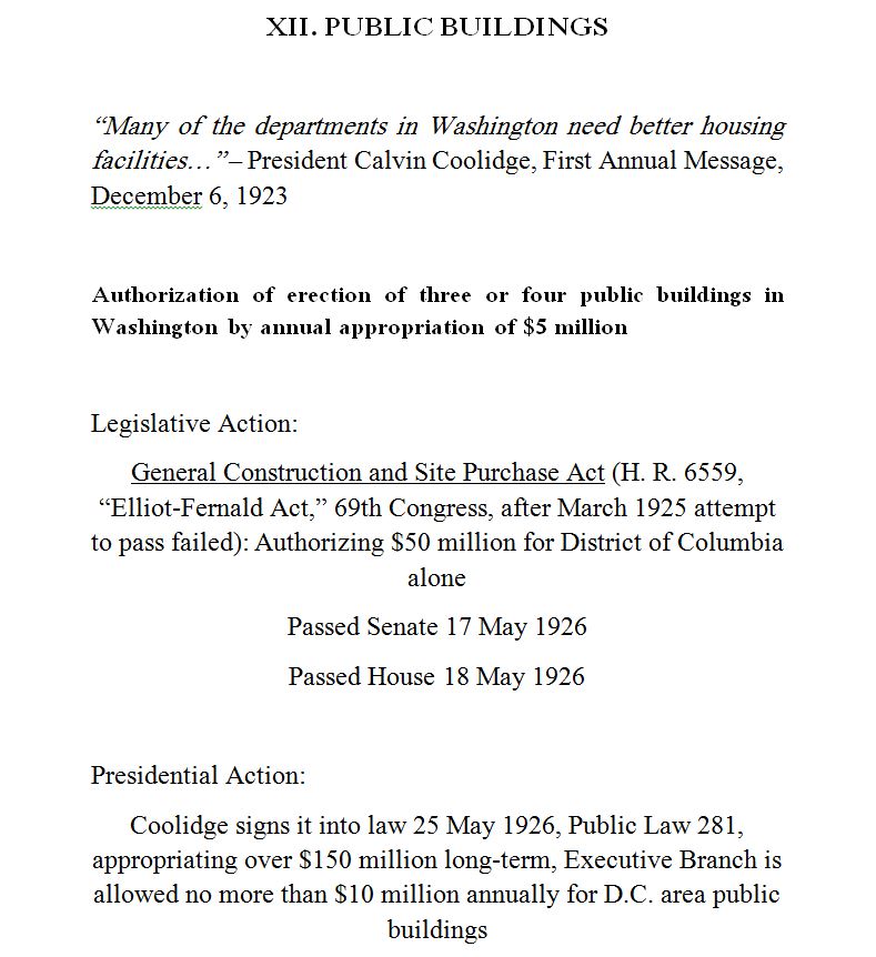 The long-time neglect of sound public buildings is met by Coolidge’s next proposal. It is a reminder that Cal did not always say “no” to any expenditure, there were legitimate needs to spend sometimes: