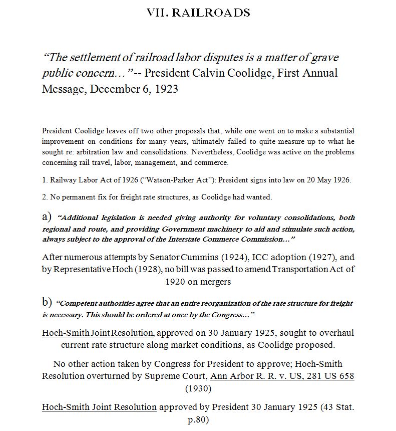One of Coolidge’s lifelong interests – the Railroads – comes next in the lineup: