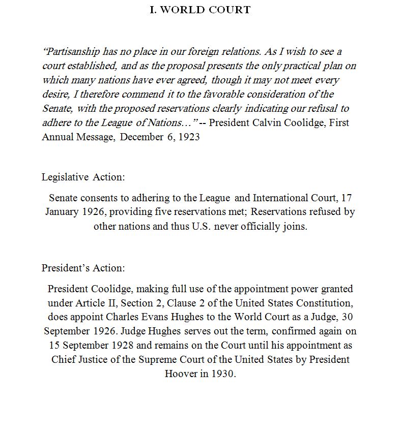 So, let’s begin. While President Coolidge, mistakenly dismissed as too provincial to lead policy abroad, delved right into foreign affairs at the outset of his First Annual Message, he displays both a good grasp on affairs overseas and surprised many for his clarity of thought when it came to the question of what to do about the World Court and the League of Nations. In the manuscript, he begins with what at the time was a very murky issue, fraught with political peril. It had doomed President Wilson and intimidated Harding, what would Coolidge do?