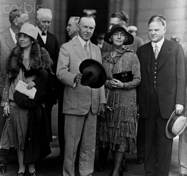 The Coolidges welcomed at Union Station on their return from the last summer escape before the end of official duties, Washington, 1928. Courtesy of Corbis. Cabinet officers around them, L to R: Attorney General Sargeant, Secretary Whiting, Secretary Work, Secretary Wilbur, and Mrs. and Mr. Hoover, soon to follow the Coolidges in office.