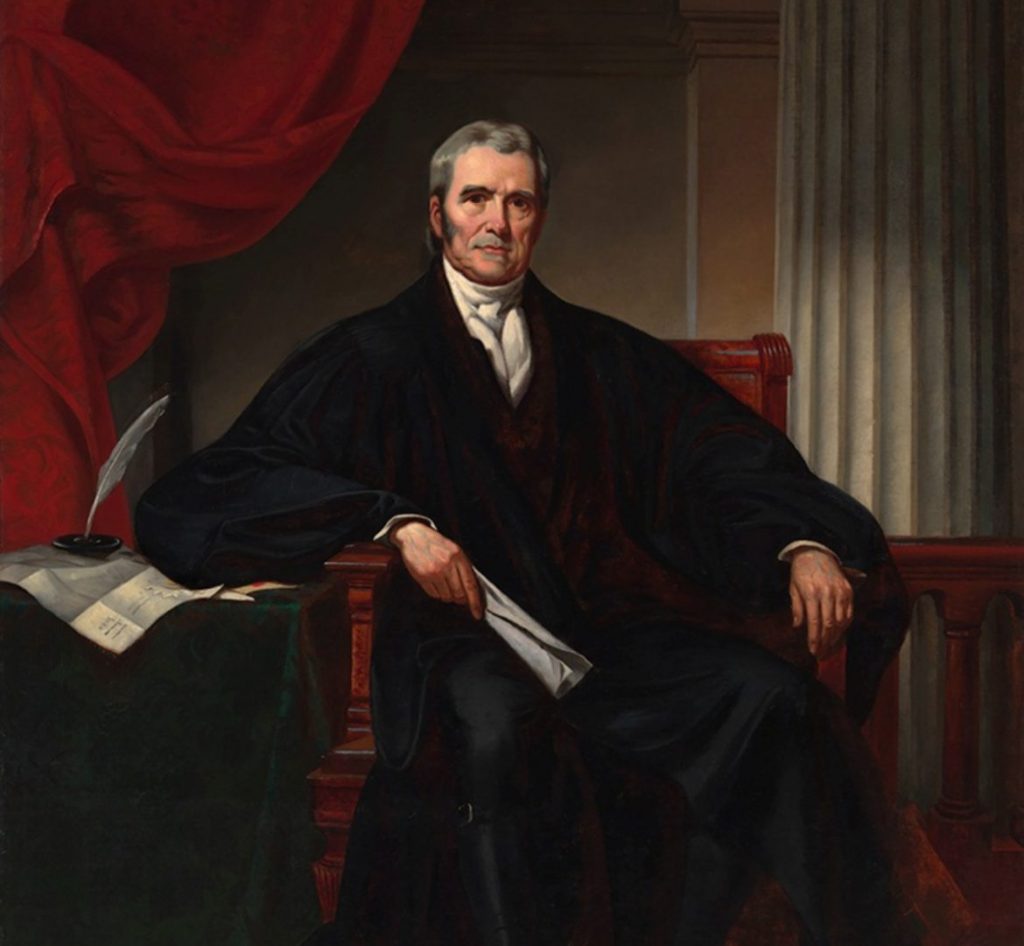 “But Massachusetts was not content with merely giving Washington to the nation. When the time came their first president, John Adams, made his secretary of state, John Marshall, chief justice of the United States. If Washington is to be credited with securing that victory which gave independence, if Monroe is to be credited with a large share in the preparation of the American constitution, this other great son of Virginia, John Marshall, must be credited with being the foremost expounder and interpreter of the federal principle which established that supremacy of the fundamental law without which nationality would have been impossible. Supplementing these great accomplishments was the work of Jefferson, equally important and perhaps more practical in promoting popular government.