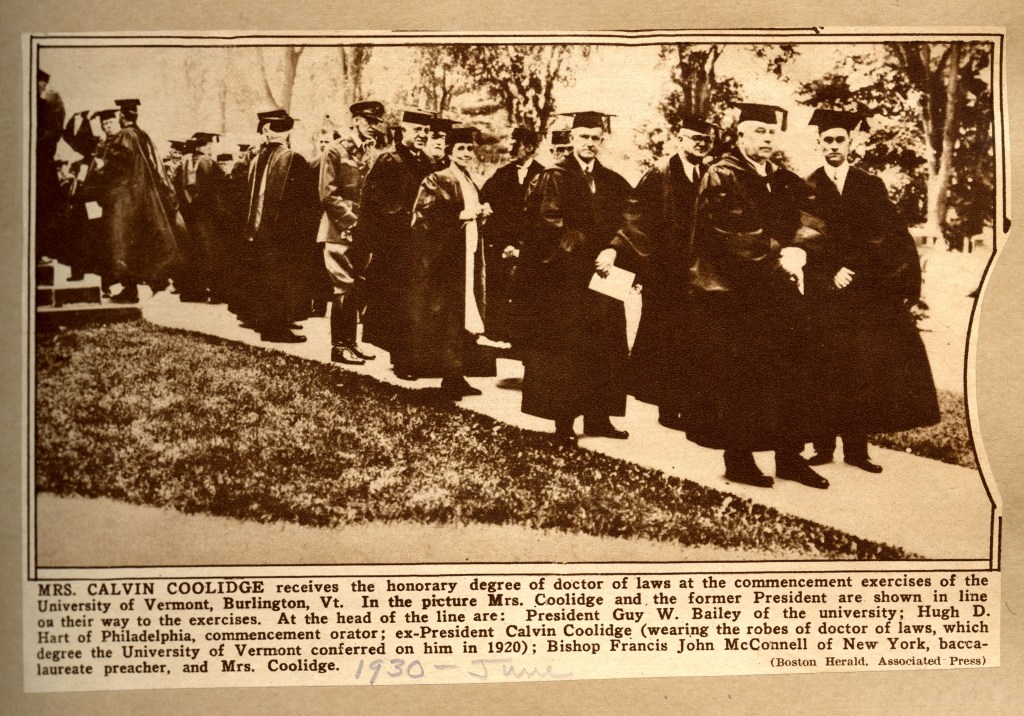 “Go forward in the line of duty, small or great, under discipline, conscious that from doing comes the power to do more, firm in the faith of the fathers, seeking the enlightenment of education, surpassing the hopes of the past, ensuring liberty by accepting responsibility, that this whole nation made like-minded with Washington and Lincoln may continue to show forth to the World a revelation of ‘the way, the truth, and the light’ ” (Excerpts from Governor Calvin Coolidge’s Commencement Address at the University of Vermont in Burlington on June 28, 1920, before its 125 graduates, also accepting a Doctor of Laws degree on that occasion)