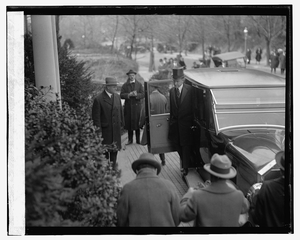 The Coolidges arrive to pay their respects and attend a private memorial service at the Wilson home, Wednesday afternoon, February 6, 1924. Photo credit: Library of Congress.