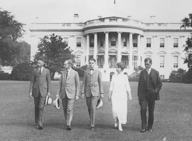 First Lady Grace Goodhue Coolidge (Photo by Library of Congress/Corbis/VCG via Getty Images)(Eingeschränkte Rechte für bestimmte redaktionelle Kunden in Deutschland. Limited rights for specific editorial clients in Germany.) *1879-1957+The portrait of the wife of the 30th President of the United States, Calvin Coolidge Vintage property of ullstein bild (Photo by Nickolas Muray/ullstein bild via Getty Images)Grace and Rebecca on the White House grounds. Photo by: Library of Congress.Grace on the Homestead porch at Plymouth Notch. Photo by: Library of Congress.President Calvin Coolidge, wearing a black armband, and First Lady Grace Goodhue Coolidge. (Photo by Library of Congress/Corbis/VCG via Getty Images)Mrs. Coolidge at one of the famous garden parties with Prudence Prim dressed for the occasion. First Lady Grace Coolidge at Horse Show, Washington DC, USA, National Photo Company, May 1925. (Photo by: Universal History Archive/Universal Images Group via Getty Images)The Coolidges aboard the Mayflower. Grace Coolidge, First Lady and Wife of U.S. President Calvin Coolidge, Official White House Portrait With Her Dog, Rob Roy, by Howard Chandler Christy, 1924. (Photo by: Universal History Archive/Universal Images Group via Getty Images)The Coolidge on the porch at Northampton. Photo by: Library of Congress.circa 1920: Calvin Coolidge (1872 – 1933), the 30th President of the United States of America (1923 – 1929). When Governor of Massachusetts in 1919 he crushed the Boston police strike. Vice President to Warren Harding he succeeded him on his death (2nd August 1923). In 1924, he won the election and America enjoyed a period of economic growth. Seen here with his wife, Grace (1879 – 1957) and his sons John and Calvin Jnr (1908-24) when Governor of Massachusetts. (Photo by New York Times Co./Getty Images)Portrait by Frank O. Salisbury, 1928.First Lady Grace Coolidge and two of her dogs with children gathered on the White House grounds for Easter egg rolling. Washington, D.C. (Photo by H.E. French/Library of Congress/Corbis/VCG via Getty Images)Mrs. Coolidge, an avid enthusiast of the handheld camera, was inducted as an honorary member of the White House Photographers Association.(Original Caption) Mrs. Coolidge, the “First Lady,” sets an example for the millions of women voters of the country, and casts her vote today, to be sent by mail to Massachusetts along with that of her distinguished husband. Note that the “First Lady” intends that her ballot be secret as she carefully shields her vote from view. (Photo by George Rinhart/Corbis via Getty Images)The Coolidges at Mount Rushmore, South Dakota, summer of 1927. John Coolidge (1906-2000), former United States President Calvin Coolidge (1872-1933), Calvin Coolidge, Jr. (1908-1924), former First Lady Grace Coolidge (1879-1957) and George Christian looking over the White House lawns, Washington, D.C., USA, circa 1930. (Photo by FPG/Getty Images)(Original Caption) President and Mrs. Coolidge try out skis presented to them by the National Ski Association.The Coolidge family and the Dawes family (Charles Dawes was Coolidge’s Vice President) on the steps at the White House. (Photo by H.E. French/Library of Congress/Corbis/VCG via Getty Images)Portrait of Mrs. Coolidge by Philip de Laszlo, 1926.