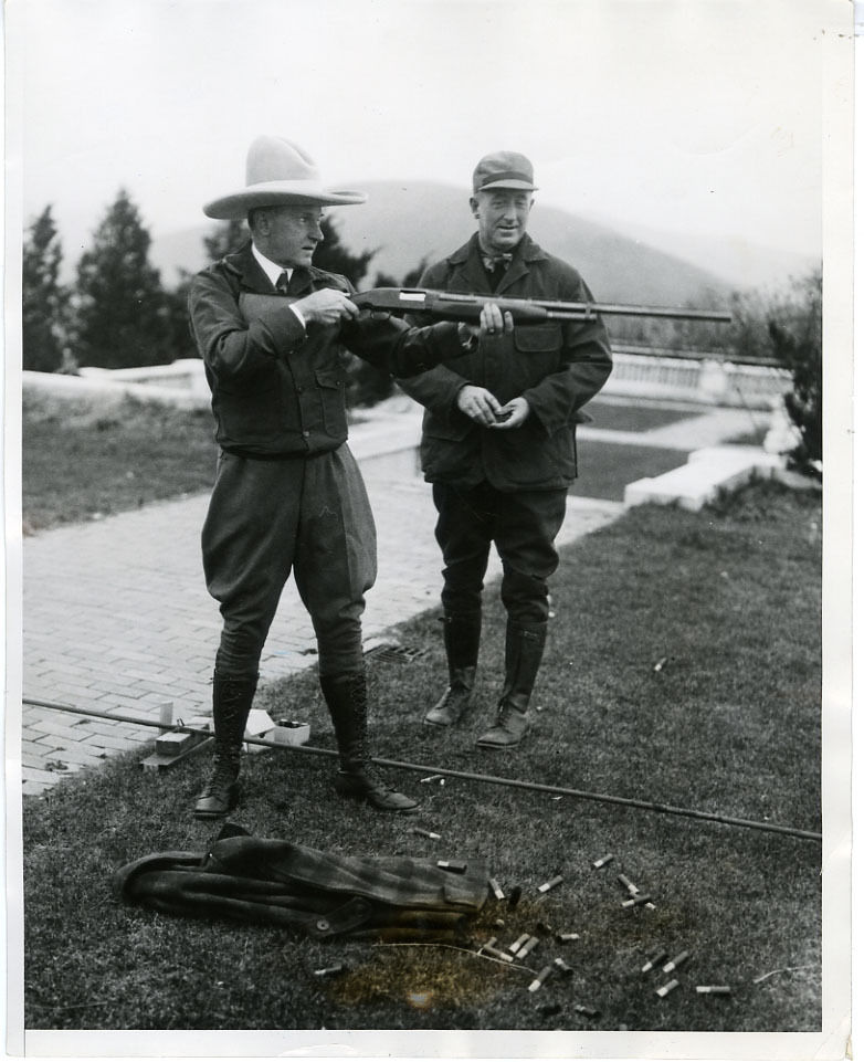 President Coolidge, dubbed here “The ‘First Sportsman’ of America,” pausing before his quail hunt in the scrub of Sapelo Island, Georgia.